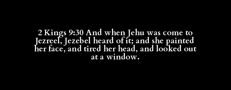 2 Kings 9:30 And when Jehu was come to Jezreel, Jezebel heard of it; and she painted her face, and tired her head, and looked out at a window.