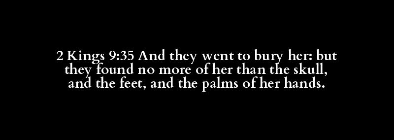 2 Kings 9:35 And they went to bury her: but they found no more of her than the skull, and the feet, and the palms of her hands.