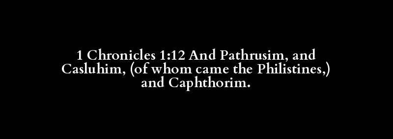 1 Chronicles 1:12 And Pathrusim, and Casluhim, (of whom came the Philistines,) and Caphthorim.