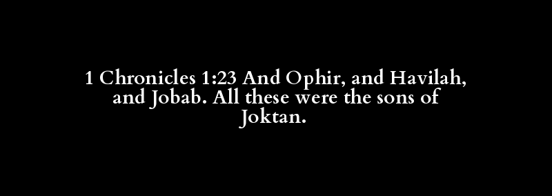 1 Chronicles 1:23 And Ophir, and Havilah, and Jobab. All these were the sons of Joktan.