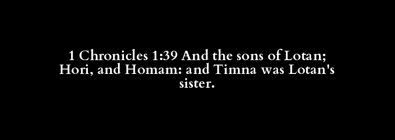 1 Chronicles 1:39 And the sons of Lotan; Hori, and Homam: and Timna was Lotan's sister.