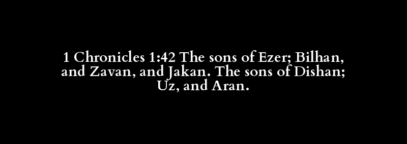 1 Chronicles 1:42 The sons of Ezer; Bilhan, and Zavan, and Jakan. The sons of Dishan; Uz, and Aran.