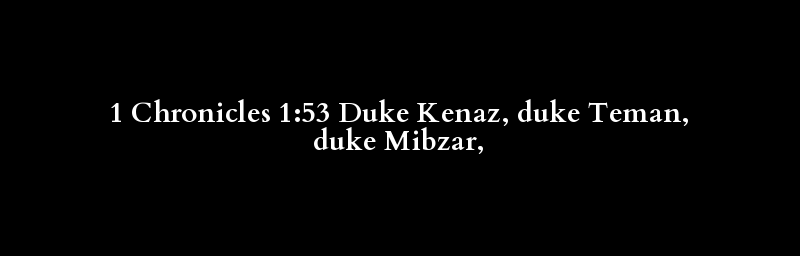 1 Chronicles 1:53 Duke Kenaz, duke Teman, duke Mibzar,