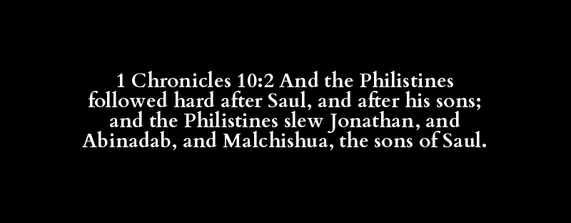 1 Chronicles 10:2 And the Philistines followed hard after Saul, and after his sons; and the Philistines slew Jonathan, and Abinadab, and Malchishua, the sons of Saul.