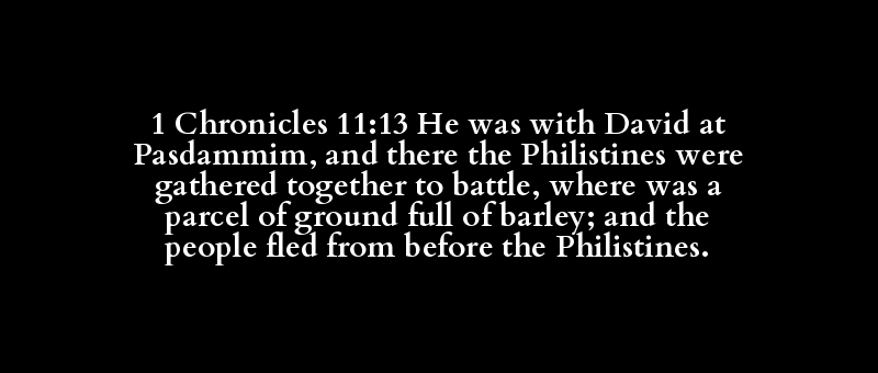 1 Chronicles 11:13 He was with David at Pasdammim, and there the Philistines were gathered together to battle, where was a parcel of ground full of barley; and the people fled from before the Philistines.