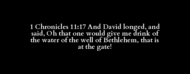 1 Chronicles 11:17 And David longed, and said, Oh that one would give me drink of the water of the well of Bethlehem, that is at the gate!