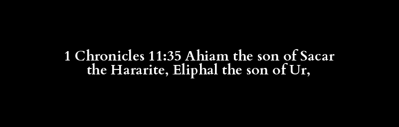 1 Chronicles 11:35 Ahiam the son of Sacar the Hararite, Eliphal the son of Ur,