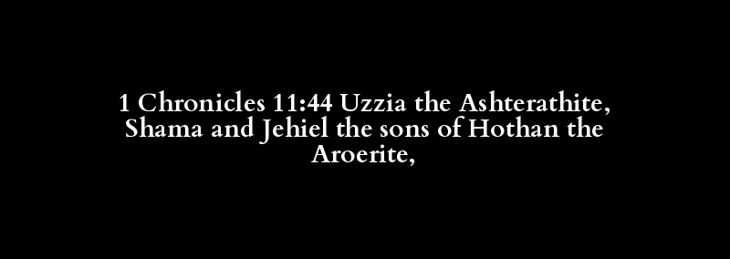 1 Chronicles 11:44 Uzzia the Ashterathite, Shama and Jehiel the sons of Hothan the Aroerite,