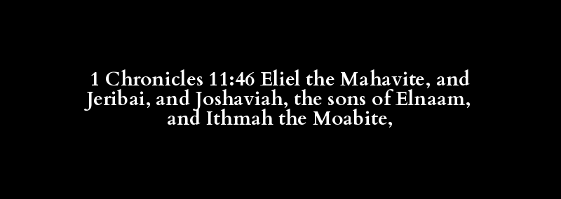 1 Chronicles 11:46 Eliel the Mahavite, and Jeribai, and Joshaviah, the sons of Elnaam, and Ithmah the Moabite,