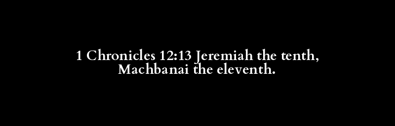 1 Chronicles 12:13 Jeremiah the tenth, Machbanai the eleventh.
