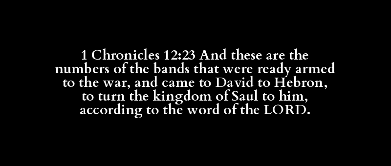 1 Chronicles 12:23 And these are the numbers of the bands that were ready armed to the war, and came to David to Hebron, to turn the kingdom of Saul to him, according to the word of the LORD.