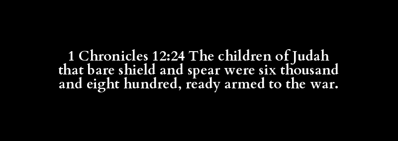 1 Chronicles 12:24 The children of Judah that bare shield and spear were six thousand and eight hundred, ready armed to the war.