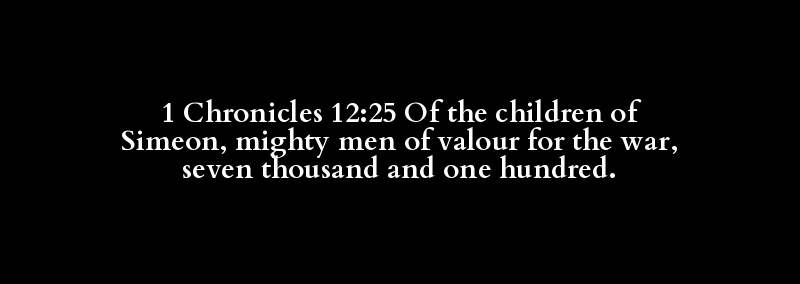 1 Chronicles 12:25 Of the children of Simeon, mighty men of valour for the war, seven thousand and one hundred.