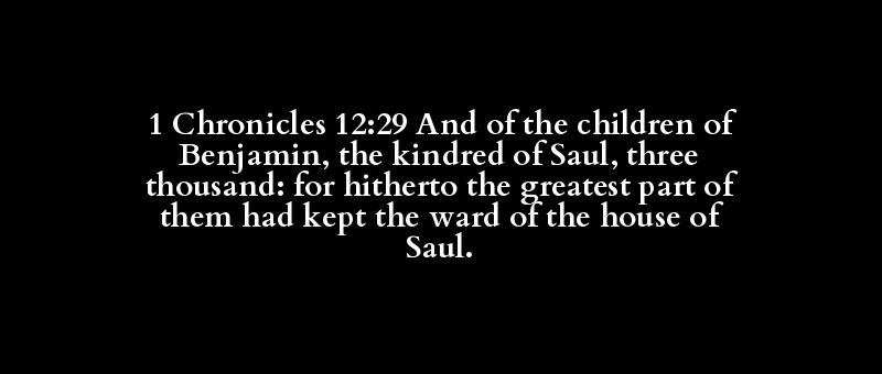 1 Chronicles 12:29 And of the children of Benjamin, the kindred of Saul, three thousand: for hitherto the greatest part of them had kept the ward of the house of Saul.