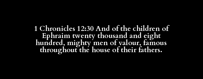 1 Chronicles 12:30 And of the children of Ephraim twenty thousand and eight hundred, mighty men of valour, famous throughout the house of their fathers.