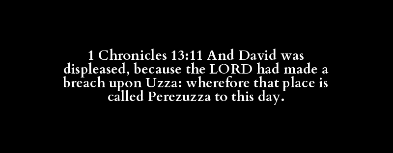 1 Chronicles 13:11 And David was displeased, because the LORD had made a breach upon Uzza: wherefore that place is called Perezuzza to this day.