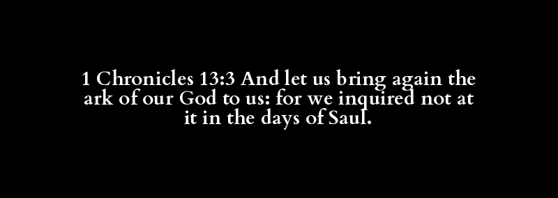 1 Chronicles 13:3 And let us bring again the ark of our God to us: for we inquired not at it in the days of Saul.