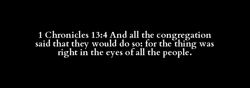 1 Chronicles 13:4 And all the congregation said that they would do so: for the thing was right in the eyes of all the people.