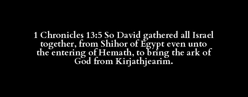 1 Chronicles 13:5 So David gathered all Israel together, from Shihor of Egypt even unto the entering of Hemath, to bring the ark of God from Kirjathjearim.