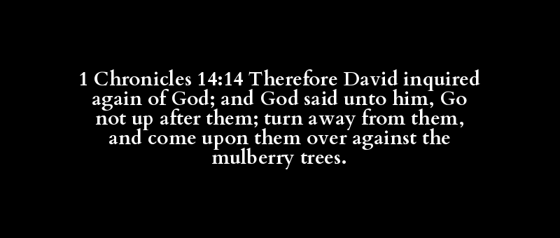 1 Chronicles 14:14 Therefore David inquired again of God; and God said unto him, Go not up after them; turn away from them, and come upon them over against the mulberry trees.