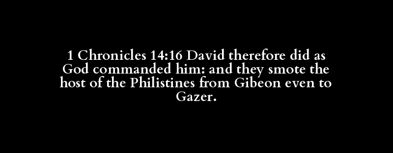 1 Chronicles 14:16 David therefore did as God commanded him: and they smote the host of the Philistines from Gibeon even to Gazer.