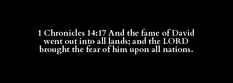 1 Chronicles 14:17 And the fame of David went out into all lands; and the LORD brought the fear of him upon all nations.