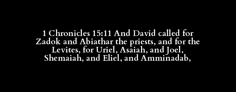 1 Chronicles 15:11 And David called for Zadok and Abiathar the priests, and for the Levites, for Uriel, Asaiah, and Joel, Shemaiah, and Eliel, and Amminadab,
