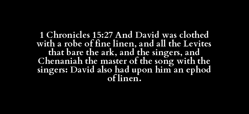 1 Chronicles 15:27 And David was clothed with a robe of fine linen, and all the Levites that bare the ark, and the singers, and Chenaniah the master of the song with the singers: David also had upon him an ephod of linen.