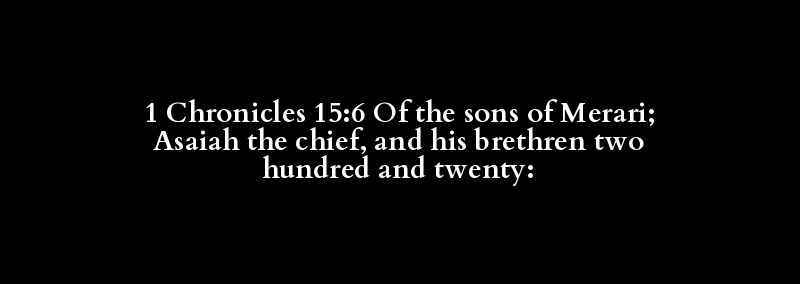 1 Chronicles 15:6 Of the sons of Merari; Asaiah the chief, and his brethren two hundred and twenty: