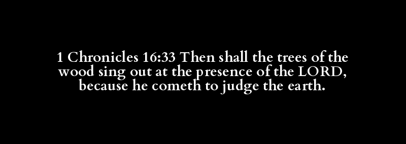 1 Chronicles 16:33 Then shall the trees of the wood sing out at the presence of the LORD, because he cometh to judge the earth.