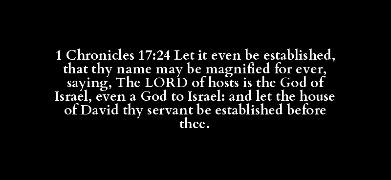 1 Chronicles 17:24 Let it even be established, that thy name may be magnified for ever, saying, The LORD of hosts is the God of Israel, even a God to Israel: and let the house of David thy servant be established before thee.