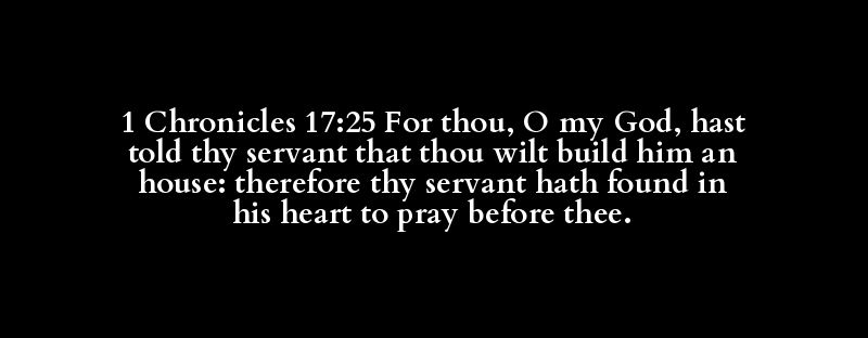 1 Chronicles 17:25 For thou, O my God, hast told thy servant that thou wilt build him an house: therefore thy servant hath found in his heart to pray before thee.