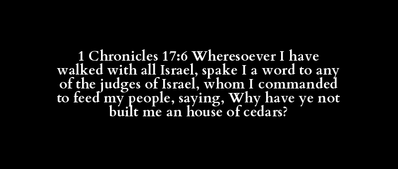 1 Chronicles 17:6 Wheresoever I have walked with all Israel, spake I a word to any of the judges of Israel, whom I commanded to feed my people, saying, Why have ye not built me an house of cedars?