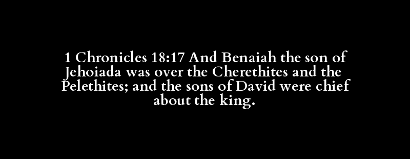 1 Chronicles 18:17 And Benaiah the son of Jehoiada was over the Cherethites and the Pelethites; and the sons of David were chief about the king.