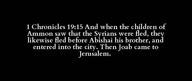 1 Chronicles 19:15 And when the children of Ammon saw that the Syrians were fled, they likewise fled before Abishai his brother, and entered into the city. Then Joab came to Jerusalem.