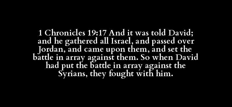 1 Chronicles 19:17 And it was told David; and he gathered all Israel, and passed over Jordan, and came upon them, and set the battle in array against them. So when David had put the battle in array against the Syrians, they fought with him.