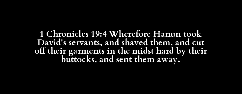 1 Chronicles 19:4 Wherefore Hanun took David's servants, and shaved them, and cut off their garments in the midst hard by their buttocks, and sent them away.