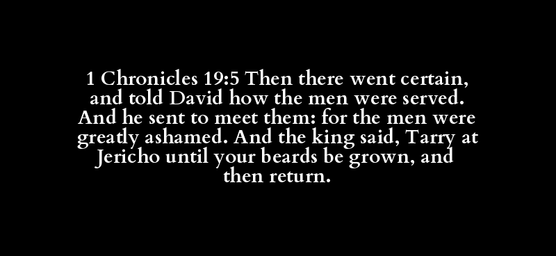 1 Chronicles 19:5 Then there went certain, and told David how the men were served. And he sent to meet them: for the men were greatly ashamed. And the king said, Tarry at Jericho until your beards be grown, and then return.