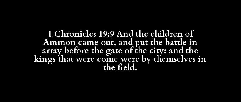 1 Chronicles 19:9 And the children of Ammon came out, and put the battle in array before the gate of the city: and the kings that were come were by themselves in the field.