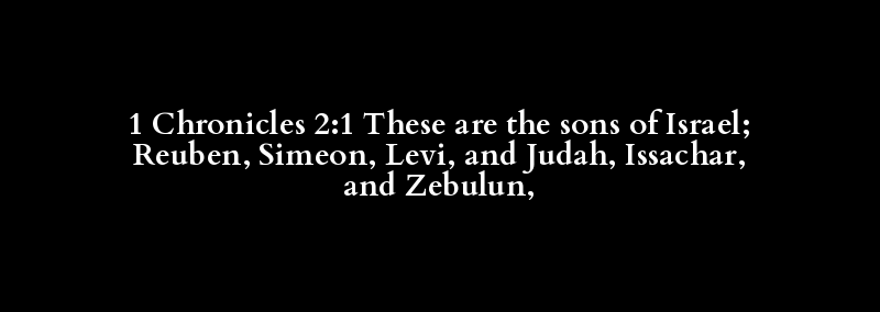 1 Chronicles 2:1 These are the sons of Israel; Reuben, Simeon, Levi, and Judah, Issachar, and Zebulun,