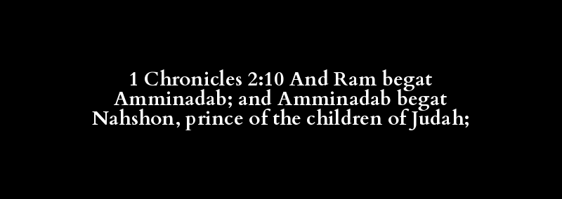 1 Chronicles 2:10 And Ram begat Amminadab; and Amminadab begat Nahshon, prince of the children of Judah;