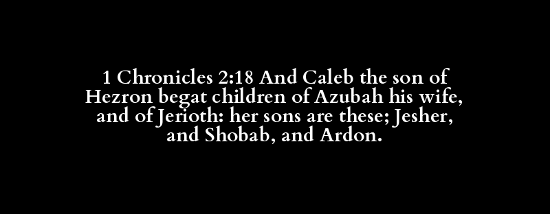 1 Chronicles 2:18 And Caleb the son of Hezron begat children of Azubah his wife, and of Jerioth: her sons are these; Jesher, and Shobab, and Ardon.
