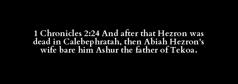 1 Chronicles 2:24 And after that Hezron was dead in Calebephratah, then Abiah Hezron's wife bare him Ashur the father of Tekoa.