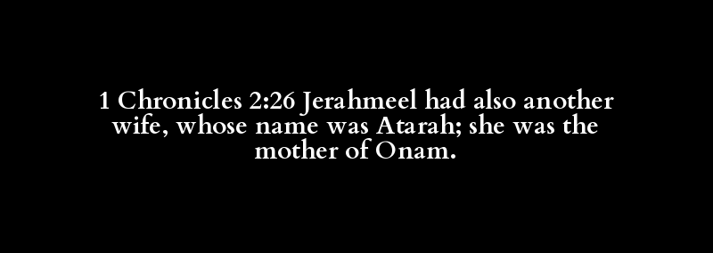 1 Chronicles 2:26 Jerahmeel had also another wife, whose name was Atarah; she was the mother of Onam.