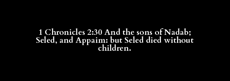 1 Chronicles 2:30 And the sons of Nadab; Seled, and Appaim: but Seled died without children.