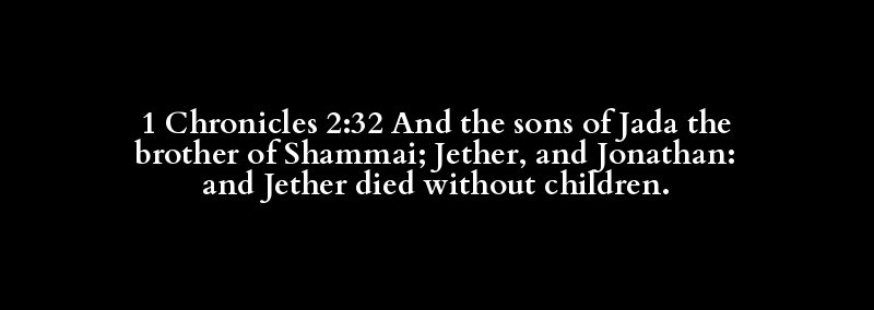 1 Chronicles 2:32 And the sons of Jada the brother of Shammai; Jether, and Jonathan: and Jether died without children.