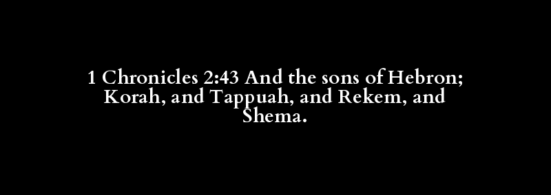 1 Chronicles 2:43 And the sons of Hebron; Korah, and Tappuah, and Rekem, and Shema.