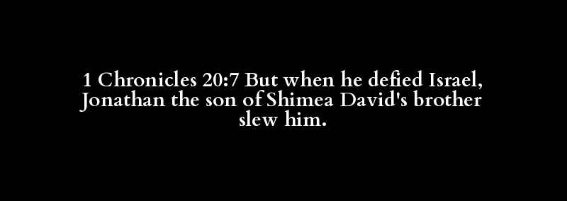 1 Chronicles 20:7 But when he defied Israel, Jonathan the son of Shimea David's brother slew him.