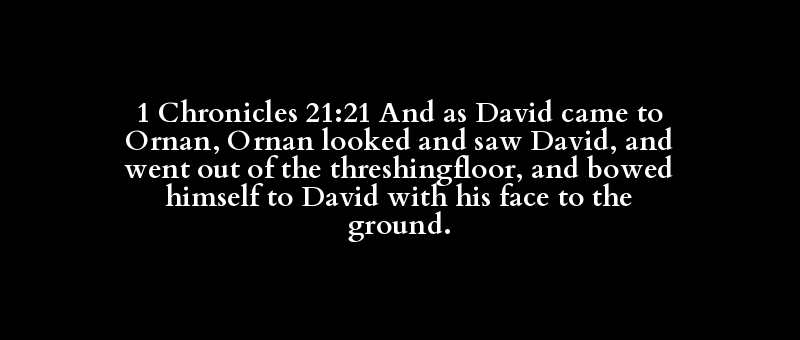 1 Chronicles 21:21 And as David came to Ornan, Ornan looked and saw David, and went out of the threshingfloor, and bowed himself to David with his face to the ground.