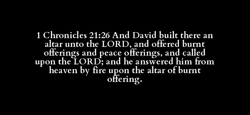 1 Chronicles 21:26 And David built there an altar unto the LORD, and offered burnt offerings and peace offerings, and called upon the LORD; and he answered him from heaven by fire upon the altar of burnt offering.